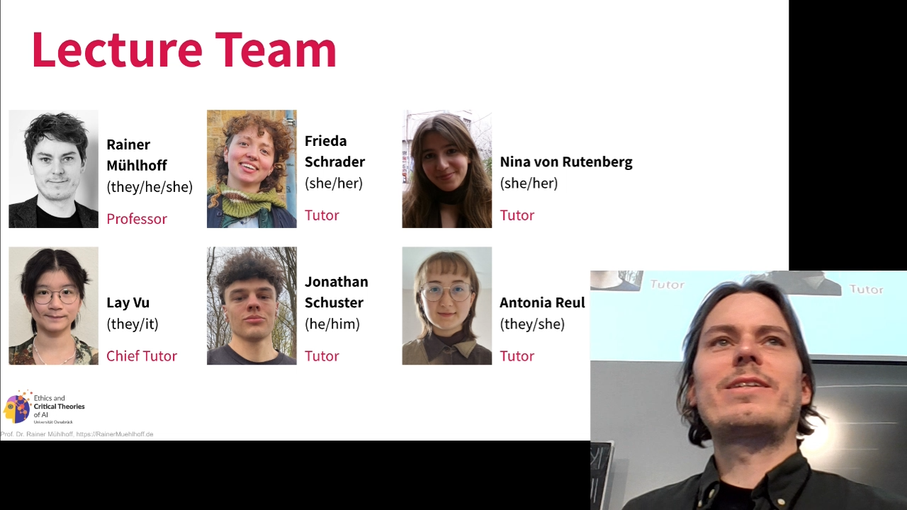 The lecture is an ideal starting point to get an orientation in the field and to possibly start engaging with more specialized courses and/or research projects in the context of the Ethics and Critical Theories of AI group at the Institute for Cognitive Science.