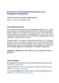 @article{Siebold-Witschas-Mühlhoff2025:KI-Resignation, title = {KI-Resignation als Zukunftsgefühl: Beobachtungen aus der Bildungsarbeit mit Jugendlichen}, author = {Siebold, Jan-Philipp and Witschas, Annemarie and Mühlhoff, Rainer}, date = {2025}, journal = {Preprint (under review)}, pubstate = {prepublished}, web_group = {preprint}, web_thumbnail = {/assets/images/publications/Siebold-Witschas-Mühlhoff2025:KI-Resignation.jpg}, web_preprint = {/media/publications/siebold_witschas_mühlhoff_2025_KI-Resignation_preprint.pdf} }